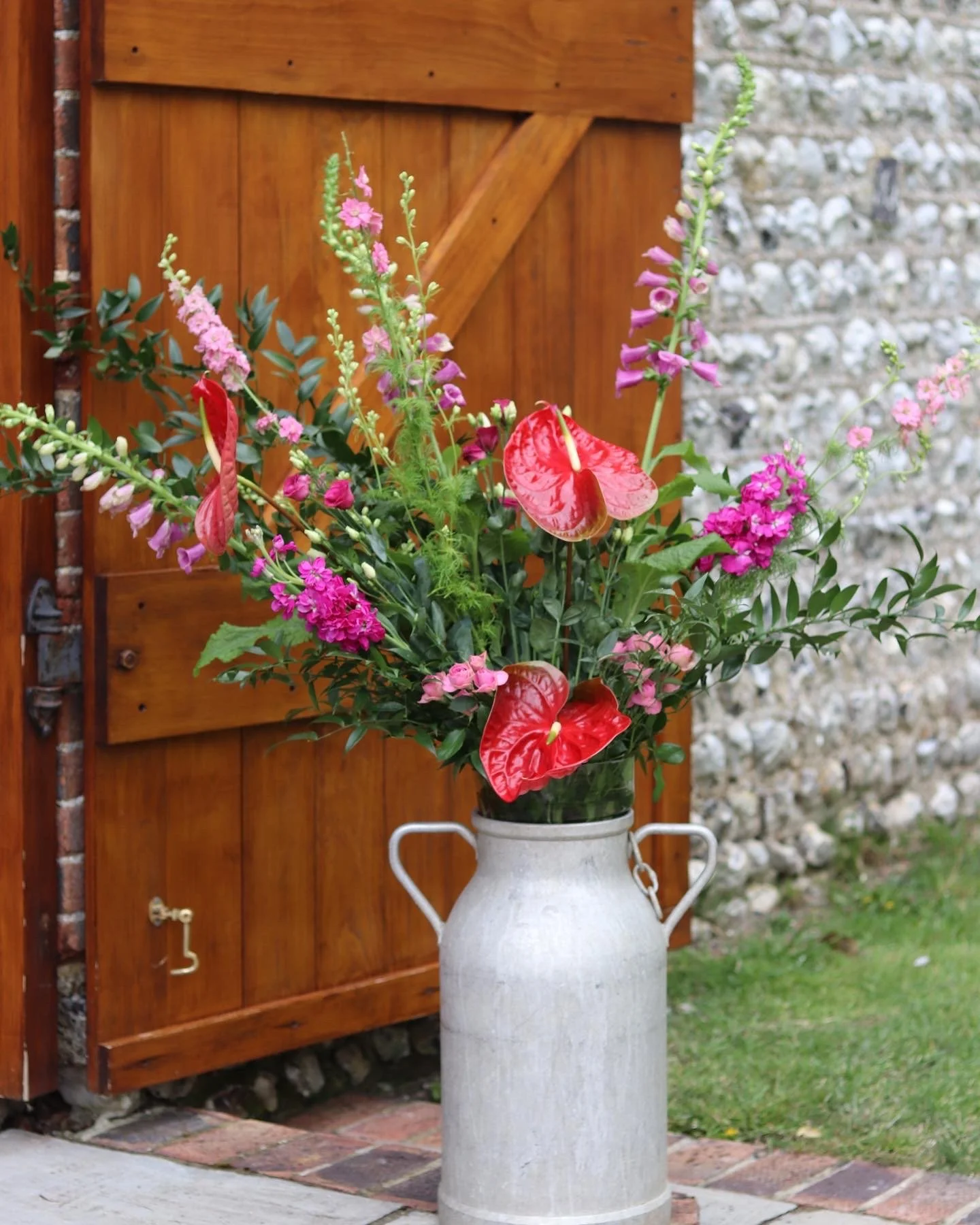 Our milk churns tie in perfectly with this countryside barn wedding venue. Photography by: Gubbins